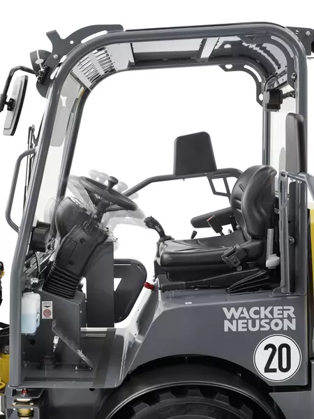 In kleine ruimtes is vooral één aspect belangrijk: veel flexibiliteit. En dat is precies wat Wacker Neuson’s wiellader WL25 met zijn drie verschillende cabinevarianten te bieden heeft. Er is keuze uit een cabine, een vast bestuurdersdak en een inklapbaar bestuurdersdak. Zo kan de machine aan de individuele werkomgeving aangepast worden.